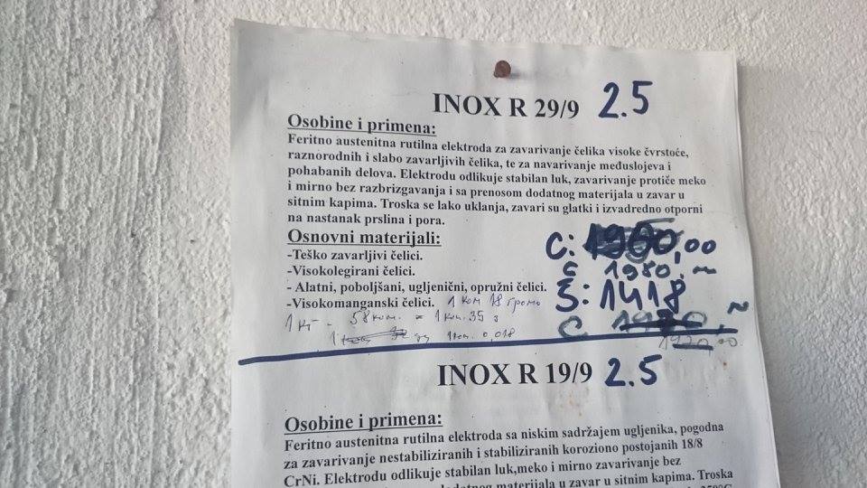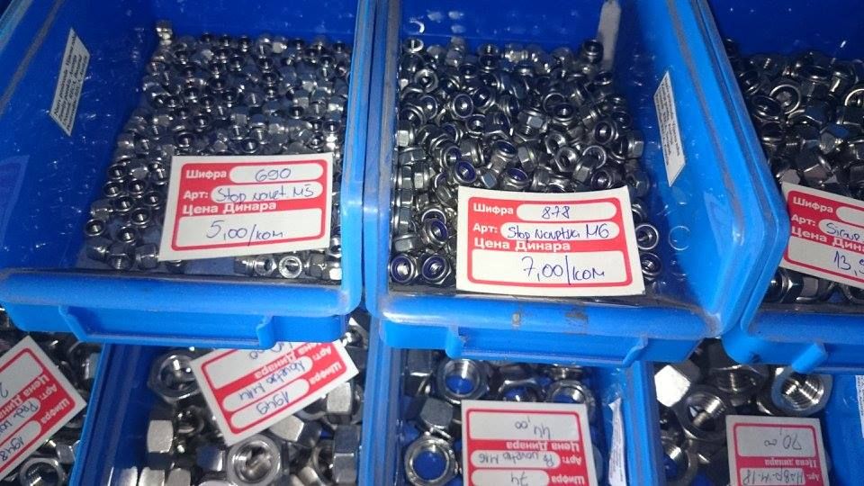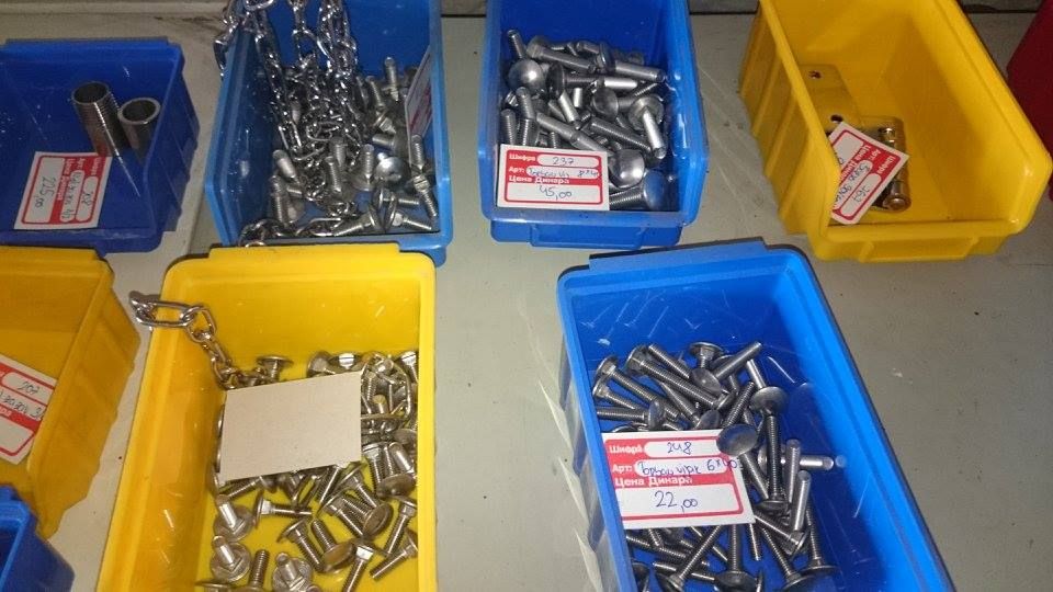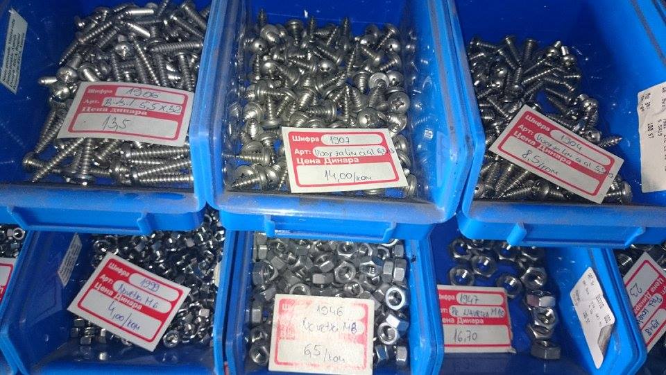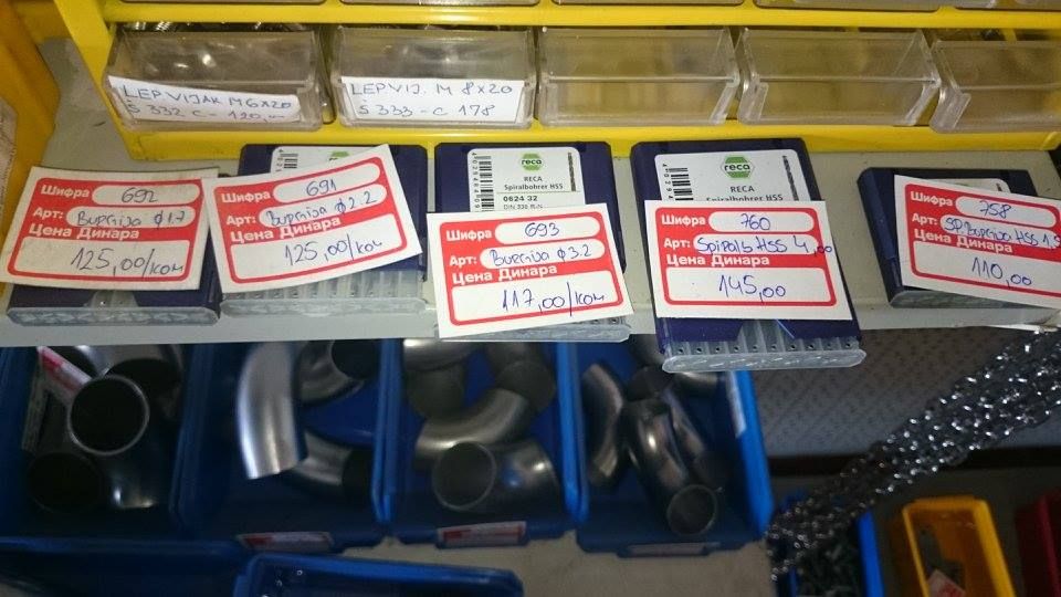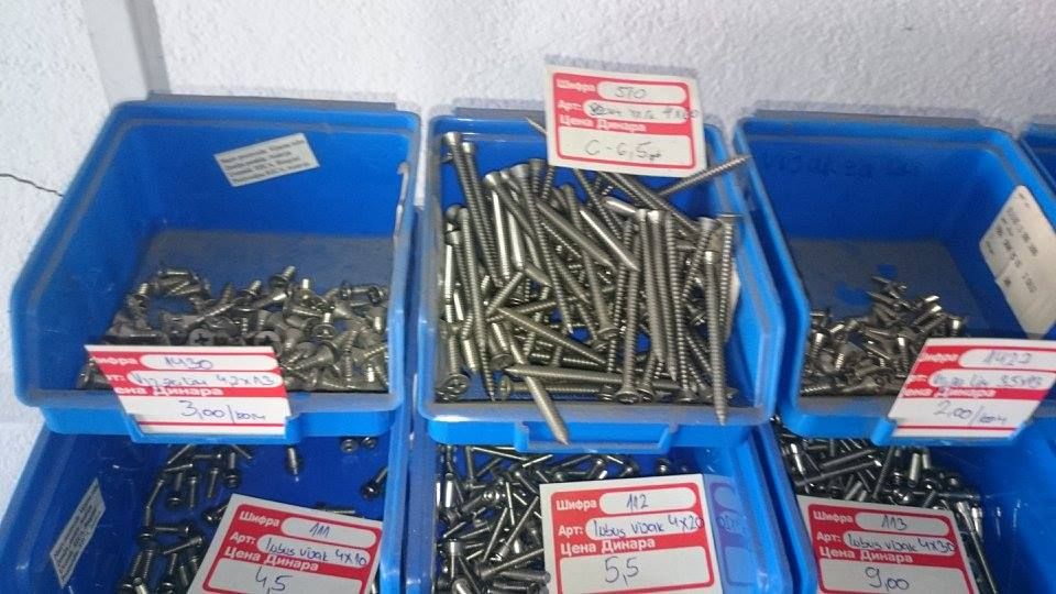 Bavimo se prodajom prohroma u kvalitetu 4580 : 1.Pune sipke ( okrugle, sestougaone, kvadratne ) 2.Flahovi 3.Cevi ( okrugle, kvadratne, pravougaone ) 4.POLIRANE CEVI 5.L-profil ( vinklovi ) 6.T-komad 7.Ultra burgija HSS ( 3, 4, 5, 6 ), Spirbal HSS ( 1.5, 1.7, 2.2, 3.2, 4 ) 8.SRAFOVSKA ROBA ( sestougaoni vijak, vijak sa upustenom glavom, inbus vijak, navrtka-matica ( obicna, stop navrtka, ukrasna navrtka ), podloske ( ravne, elasticne ), leptir navrtke, leptir navrtke sa vijkom, torban vijak, vijak za lim, vijak za drvo, crvici-uvrnuti inbus vijak. 9.Cepovi za sestougaone cevi 10.Mufovi 11.Nipl za zavarivanje 12.Dupli nipl za zavarivanje 13.Sarke 14.Ventil 15.Lanac 3 16.Navojne sipke 17.Prohromska zica 1.6, 2.0 18.Kolena 19.Kugle Nudimo LIMOVE u 4580 ( prehrambeni – kiselootporan, ne privlaci magnet ) i 4150 kvalitetu ( vodootporan ), od # 0.5 do # 4, moze da se nabavi i tanje. Table dolaze u raznim dimenzijama, moze da se sece na odredjenu dimenziju. Imamo i PROHROMSKE ELEKTRODE 19/9 i 29/9. Prodajemo i lepezaste brusne diskove za poliranje cevi kao i paste za poliranje ( ABRA, LUMO ).